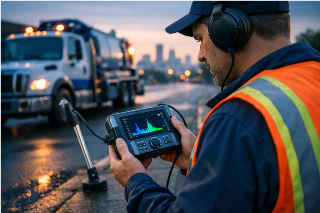 3、精准定位与验证当巡回听音发现疑似漏点后,便进入精准定位阶段。技术人员会使用康高特大海(PLD-11)听漏仪在疑似区域进行网格化精细探测。通过设备提供的声音信号强度与频谱双重显示,结合经验判断,可以精确锁定漏水点的具体位置。例如,在某市老旧城区管网改造项目中,巡检团队引入了康高特的听漏仪设备。该区域管材复杂,涵盖了铸铁管与新型复合材料。通过大海(PLD-11)这款听漏仪的智能滤波技术,团队在相对短的时间内精准定位并修复了多处隐蔽漏点,其中一处漏点位于地下2.4米。修复后,该片区的夜间最小流量下降了15%,直接挽回了可观的经济损失 [4]。这一案例充分证明了康高特大海(PLD-11)听漏仪在复杂环境下的性能表现与实际应用价值,也彰显了康高特在水务及市政公用事业领域的贡献。