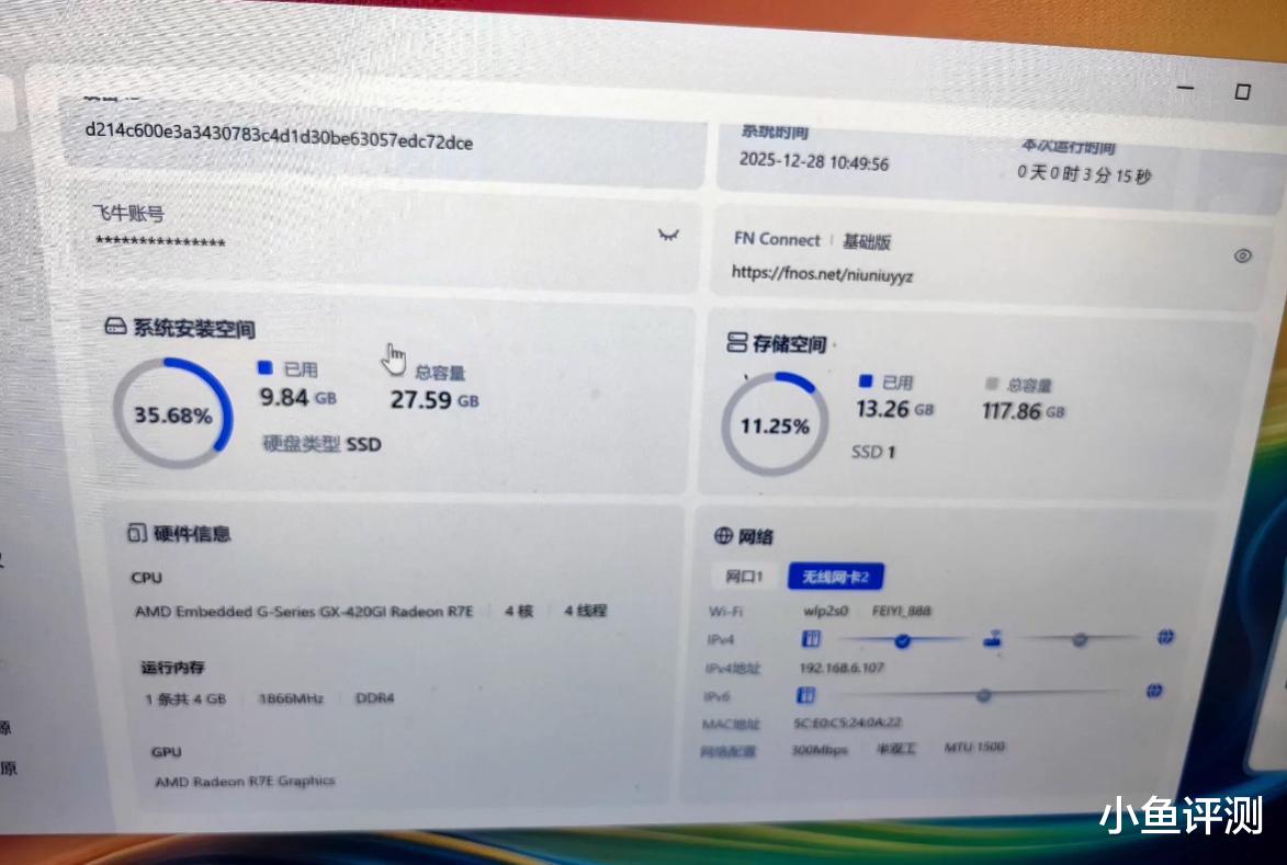 所以说,在现在这个什么都在涨的年代,还能在二手鱼里淘到这种价格被打下来的边角料玩具,对我们这些预算抠搜的玩家来说,确实是个乐子。它承载不了太多高性能的需求,但总能给你折腾点新花样出来,装个飞牛,搞个家庭影音中心,或者当成练手的玩具,它都能胜任。