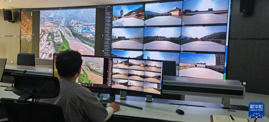 在红河园投科技服务有限责任公司控制室,工作人员正在远程操控无人机。新华社记者浦超 摄