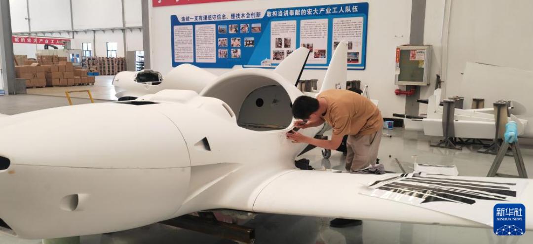 在弥勒浩翔科技有限公司的生产车间,工人正在组装飞机。新华社记者浦超 摄