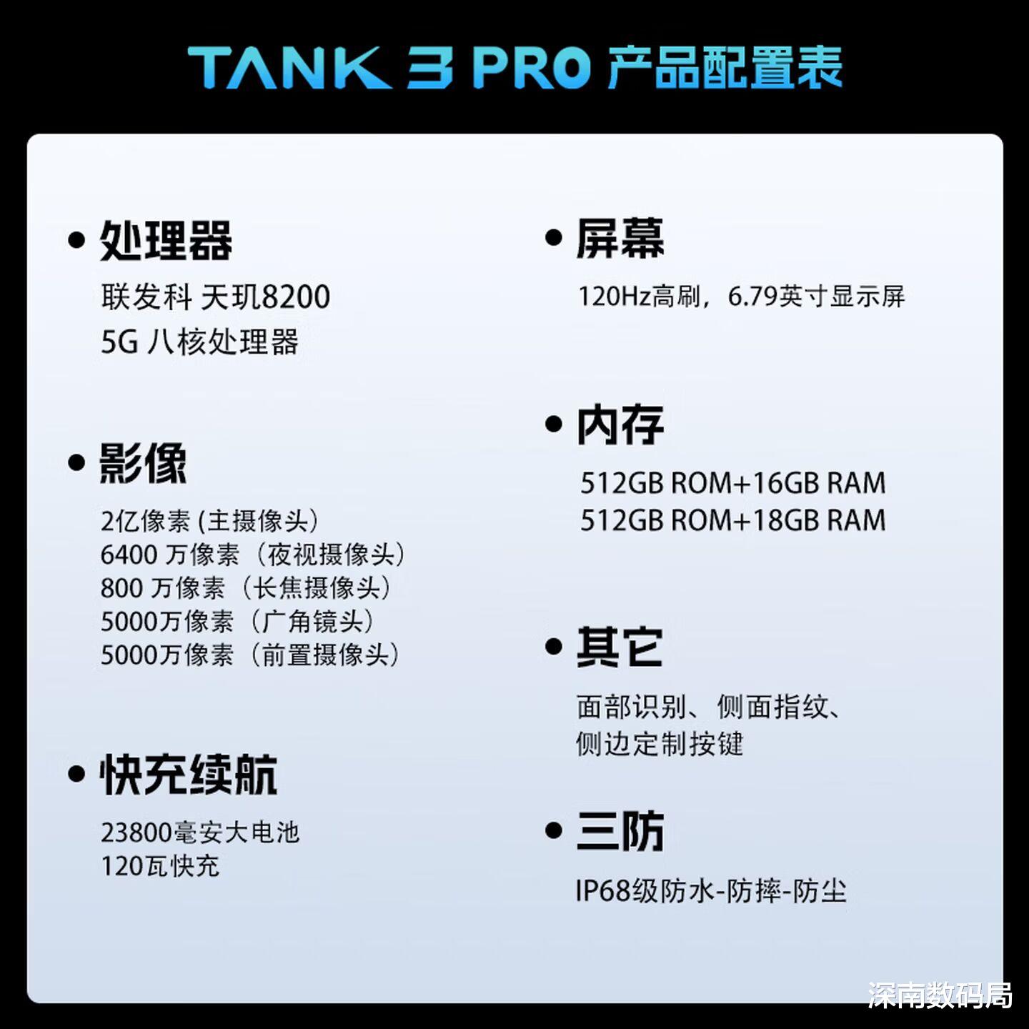 但是tank3 pro这种“不讲武德”的货就冒出来了。它不跟你卷拍照,不跟你卷屏幕,不跟你卷什么AI大模型。它就干一件事——把电池怼到天花板。
