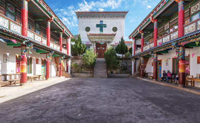 在 上盐井村,还有一座有点儿奇葩的天主教堂,它是西藏唯一的天主教堂,曾被评为中国十大最美教堂之一,是中西文化交流融合的典范。