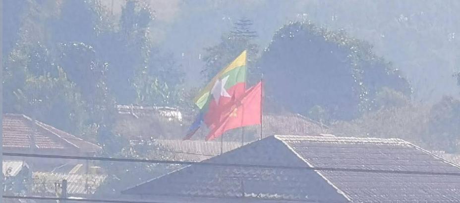 缅甸掸邦北部105码地区民众称,由若开军(AA)、德昂民族解放军(TNLA)和果敢同盟军(MNDAA)联合控制的木姐105码地区,部分果敢同盟军(MNDAA)办公室上方插上了缅甸国旗。