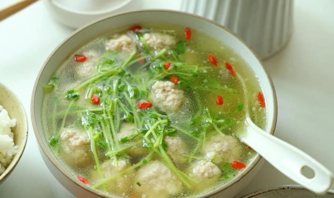豌豆苗肉丸子的汤鲜诀窍汤品是餐桌上的清凉代表,尤其是在炎热的午后。