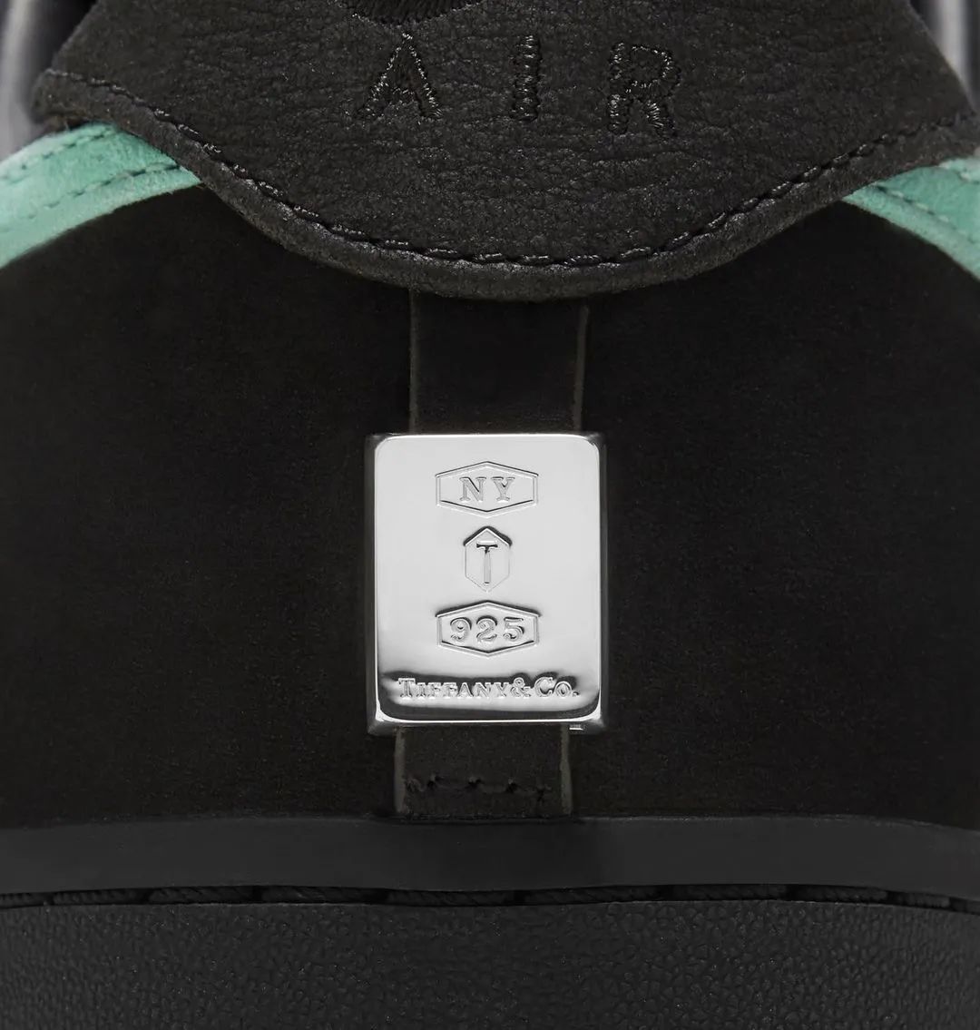 Nike x Tiffany AF1 的另一个不容忽视的细节设计,就是后跟部分的银饰 Logo 了,从这个部分就能感受到此次 Nike 与 Tiffany 联名满满的诚意。