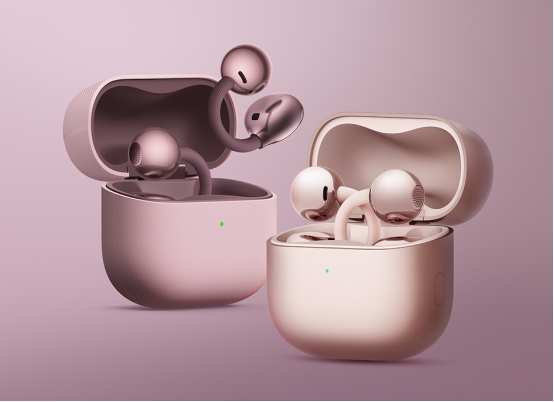 冰莓紫将冷调紫与莓果的温润巧妙融合,宛如轻霜覆于成熟浆果,泛起朦胧光泽,低调中透出内敛的现代优雅;玫瑰金则如肌肤般温润,细腻柔和的光泽中蕴含温柔而坚定的力量,佩戴时从容大方,尽显时间沉淀的美感。两种配色不仅适配日常通勤、商务会议,亦能轻松驾驭派对、约会等多元场景,真正实现“耳边C位,人群焦点”。