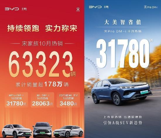 而且啊,宋Pro DM - i还有个很厉害的地方,就是两代同堂销售。这种销售策略让它的竞争力进一步增强。它可以满足不同用户的需求,无论是喜欢新款的用户,还是对老款情有独钟的用户,都能找到适合自己的车型。宋Pro DM - i荣耀版和宋L DM - i也组成了一个强大的组合。宋L DM - i在中级SUV市场也表现得非常出色,9 - 10月连续夺得中型插混SUV冠军。这两款车一个在A级SUV市场,一个在中级SUV市场,就像两把利剑,对A + B级合资燃油SUV形成了很强的冲击。