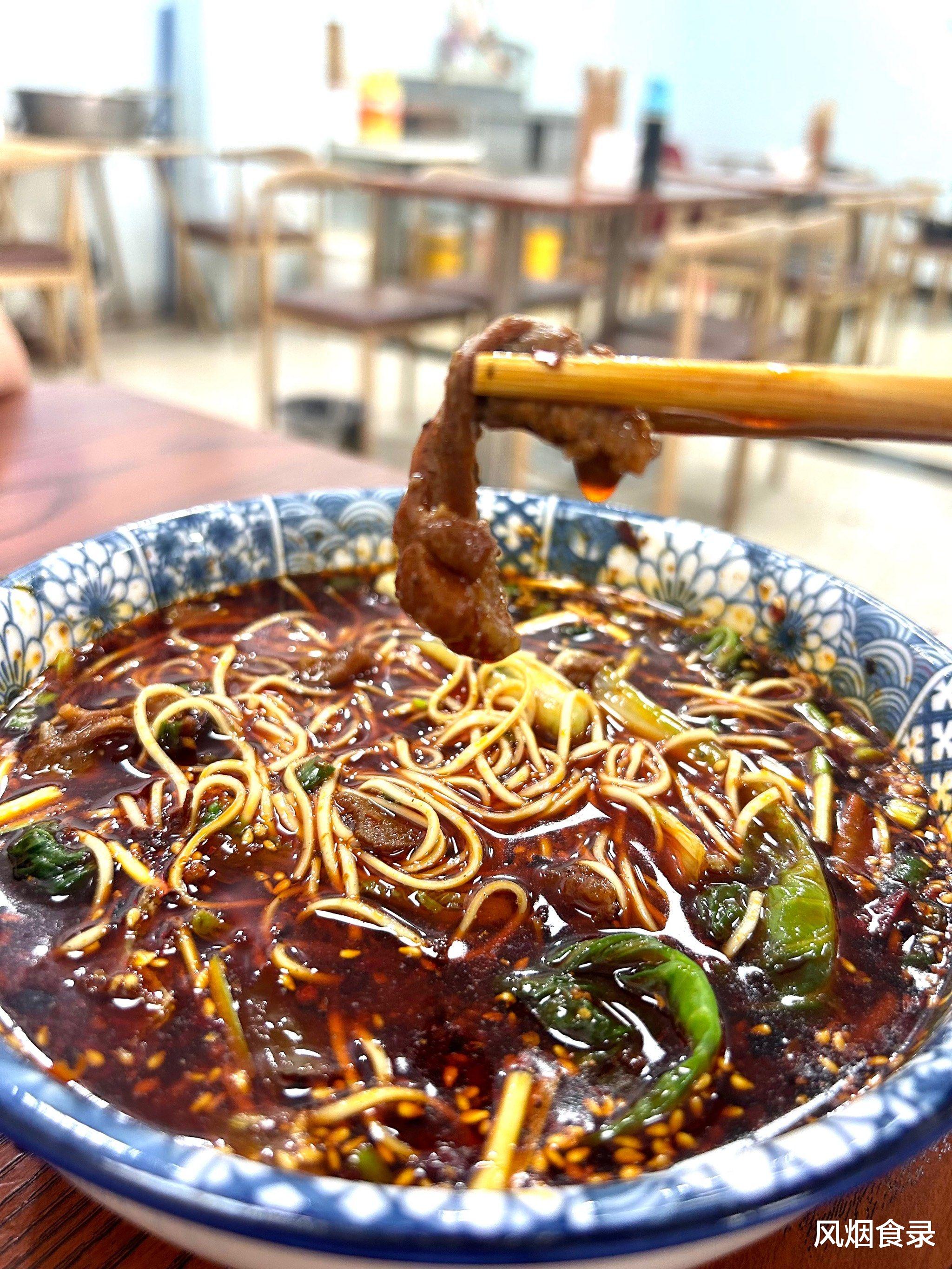 入口麻辣鲜香,面条裹着肉粒,越嚼越有味,连汤都要喝个底朝天。