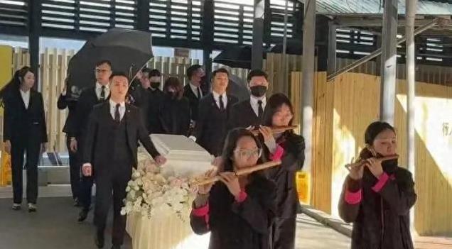 11日中午琼瑶葬礼在阳明山臻园举办,现场去的人并不是很多,唯一到场的明星只有林心如。更多的是亲朋好友和粉丝,现场安保人员众多,琼瑶的棺椁由鲜花环绕,哀悼仪式现场正中间琼瑶的画像使用的是彩色照片,并不是黑白照,倒是挺少见的。花团锦簇,遍地花瓣。哀悼仪式结束之后,尤其亲儿子陈中维捧着骨灰乘坐车辆前往埋葬地点。