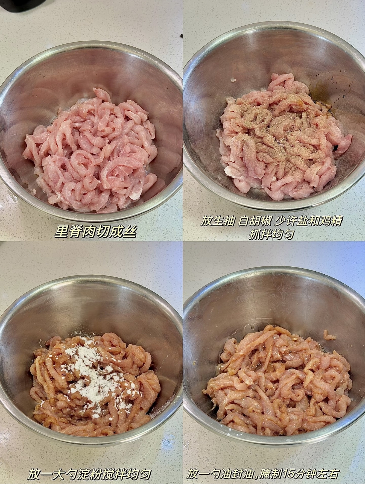 制作香辣肉丝,选材是关键的第一步。我们需要准备一块新鲜的猪里脊肉,这是肉质最嫩滑的部分。将里脊肉顺着纹理切成均匀的细丝,这一步考验着耐心与刀工,切得越均匀,烹饪时受热越一致,口感也越佳。切好的肉丝放入碗中,加入少许盐、生抽、料酒和淀粉,用手抓匀,让每一根肉丝都裹上薄薄的浆液,最后淋入一点食用油锁住水分,腌制片刻。与此同时,准备配菜:红辣椒切成细丝,为菜肴增添一抹亮丽的色彩和恰到好处的辣度;香菜洗净切段,它的独特香气将是这道菜的点睛之笔。