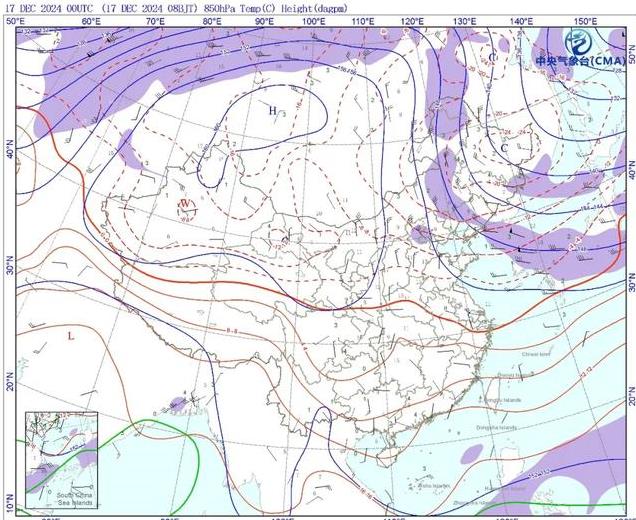 在21日的时候,达到冷空气的巅峰时间段,其先锋队进入我国长江以南区域。