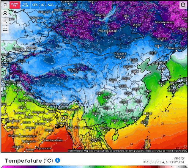 但是到了23日左右,最高气温都是0度以下,为-0.2度,这样的寒冷的确说明了冷空气实力还是较强,大降温超10度了。