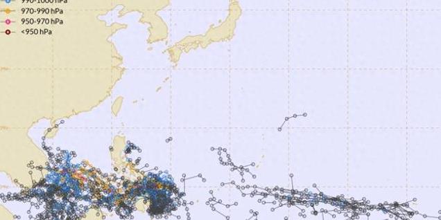 这不,西北太平洋以及南海的热带扰动发展也非常强烈,大规模的“台风线”出现。
