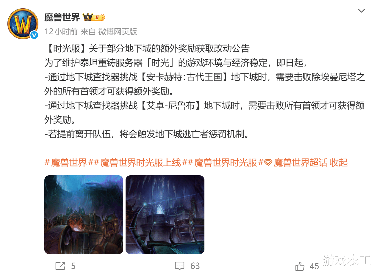只能说雷火对于魔兽世界时光服真的上心,就一个地板金的问题,其实雷火已经进行多次优化了,希望在打击刷子的同时让普通玩家们的收益不受影响。毕竟时光服中因为经验buff的加持,对大部分玩家来说金币有点不够,既要学骑术又要学技能,根本不够用。所以既要打击刷子,更要保护普通玩家。而这次雷火再次对随机本刷金币的问题进行了优化。