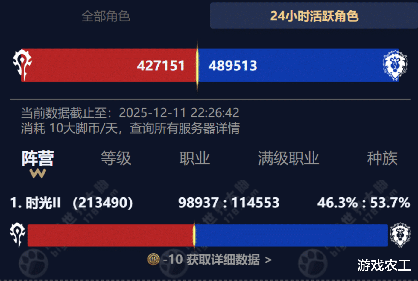 其次是排队问题,魔兽世界时光服的玩家数量不仅没有在一轮轮打击刷子玩家的过程中减少,反而更多了。目前根据大脚插件的统计,24小时活跃角色已经达到了90万,所以活跃角色数量一直在涨。而服务器排队问题其实一直存在,除了两个新服和PVE服外,其他几个PVP服整体排队时间还是比较久,还是希望雷火对排队问题进行优化,毕竟真的影响体验。