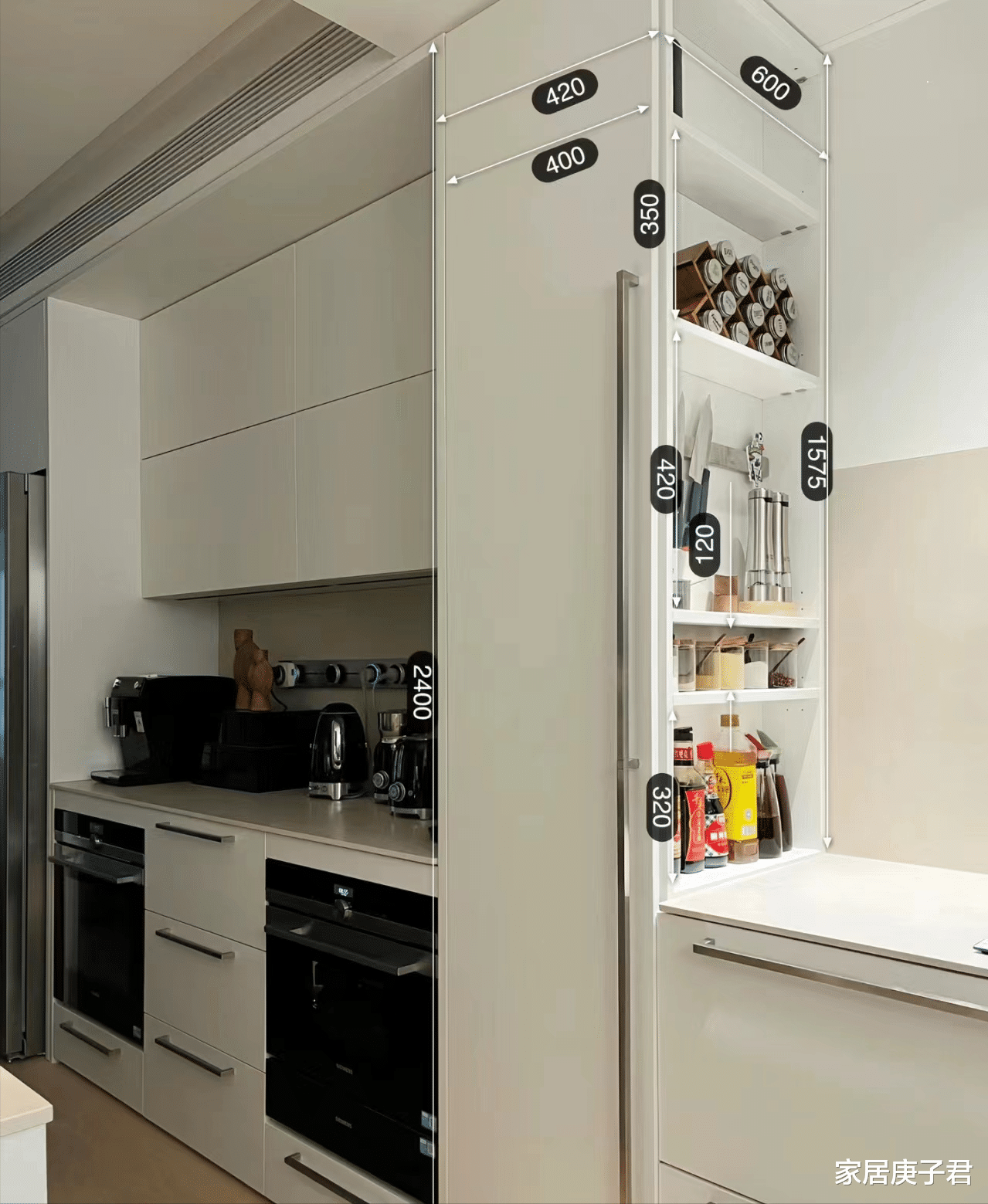一个实用的抽拉高柜不仅可以让你的厨房看起来更加整洁、美观,还能解放台面的操作空间。视觉上也会更加整洁清爽,让你的厨房成为一个高效、便捷的烹饪中心。
