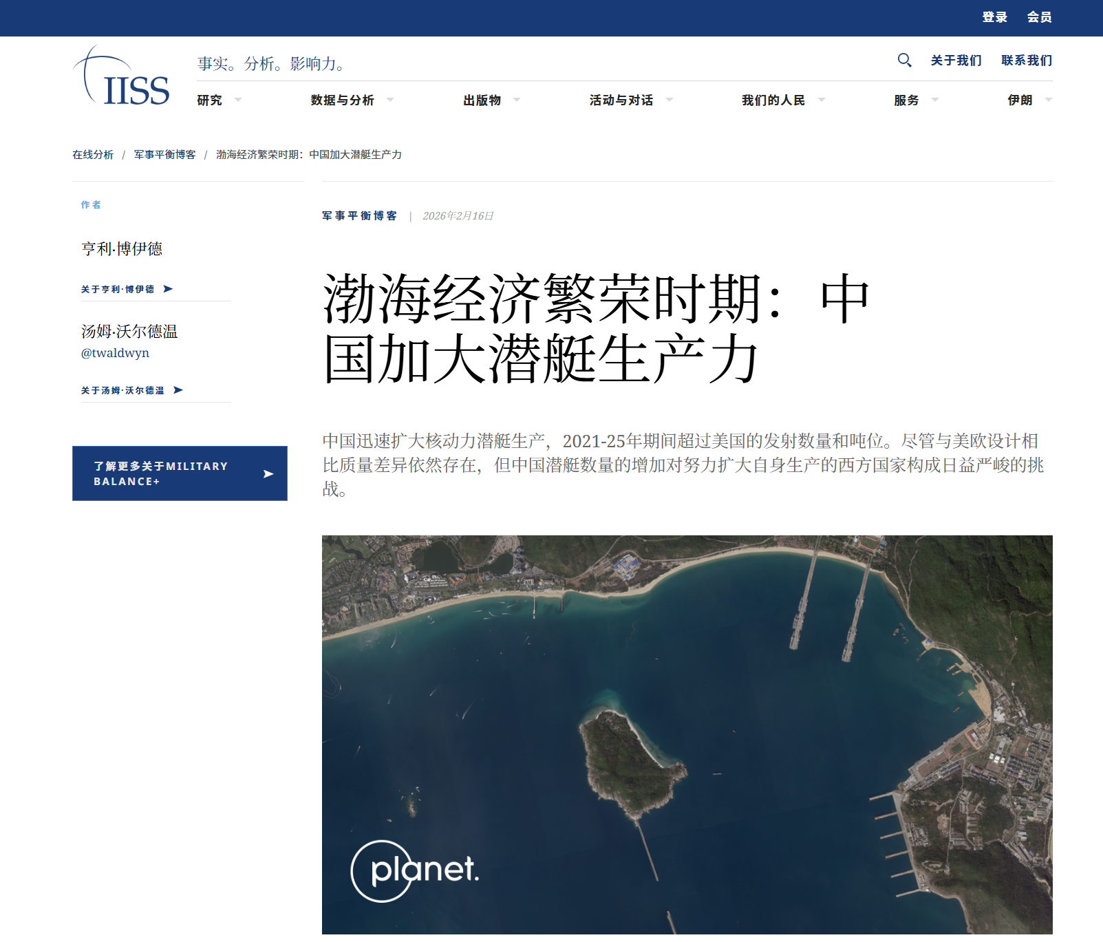 2月16日,以军事数据权威、防务分析专业、高端安全论坛闻名,在全球防务与安全领域拥有极强的政策与舆论影响力——英国国际战略研究所(IISS),对中国加速核潜艇生产发布了专题报道。