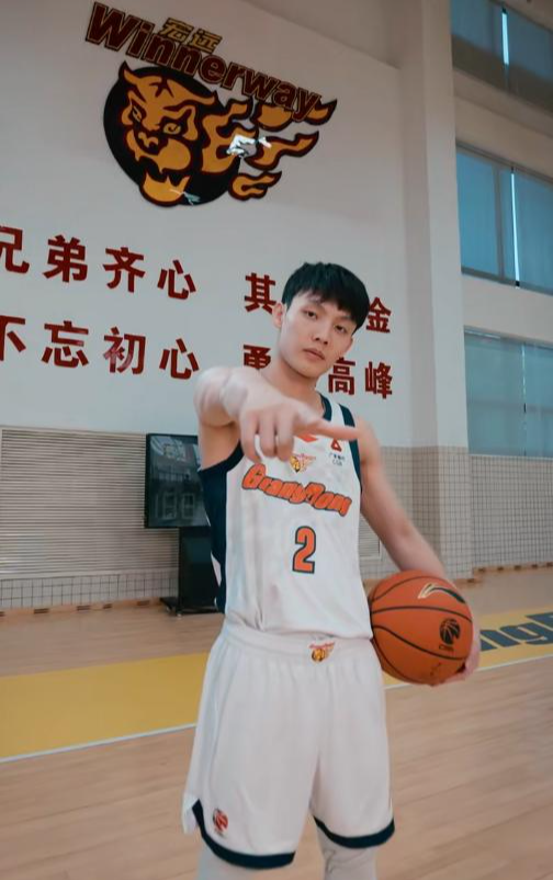 徐杰帅气十足!宏远2号左手拿球,右手指着镜头,非常冷酷。这很适合徐杰在赛场上形象,一直保持冷静、专注!