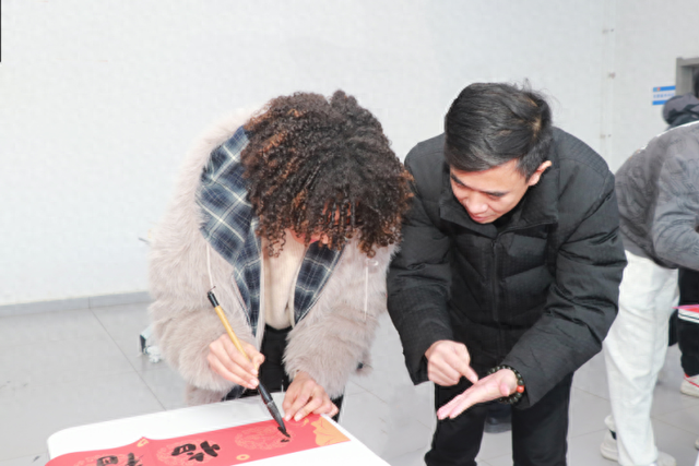 春联是楹联的一种。楹联习俗在2006年被列入中国第一批国家级非物质文化遗产代表性项目名录。在千百年的历史传衍过程中,楹联与中国古典诗、词、赋等文体互相影响、一脉相承,形式日益多样,文化积淀逐渐丰厚。老师详细地讲解了春联的平仄对仗规则、内容表达和应用。“真是太有魅力了!春联不仅在音律上要对应,内容上也要对应,每一副春联中都蕴含着丰富的文化内涵。”邓洁感叹到,“这种中国独有的文学形式,让我对中国人的精神风貌和价值追求有了更加深刻的认识。”