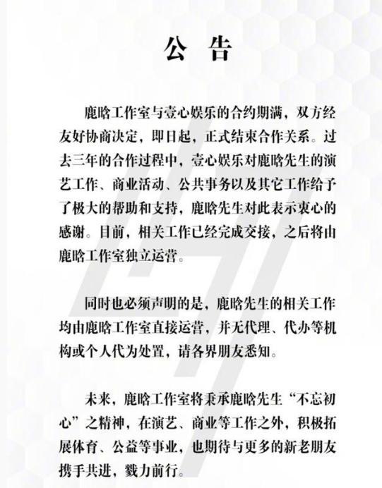 再看看鹿晗的事业发展,影视作品寥寥无几,代言和演出市场表现不佳,综艺节目也面临挑战。这样的困境,或许与他七年前的选择密切相关。2018年,鹿晗与壹心娱乐解约,选择独立运营。虽然减少了分成,但失去了经纪公司的资源支持,事业发展面临更多挑战。