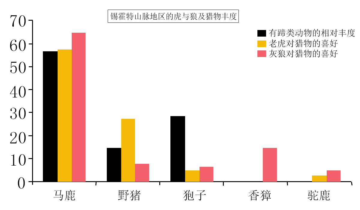 东北亚的诸多捕食者中,远东豹主要在东部山脉附近,大部分栖息地避开了老虎;棕熊是杂食动物,算不上是有蹄类动物的主要捕食者;欧亚猞猁等体型太小,只有灰狼,不仅与东北虎存在同域分布,而且食性相近。