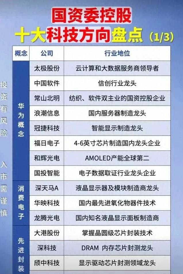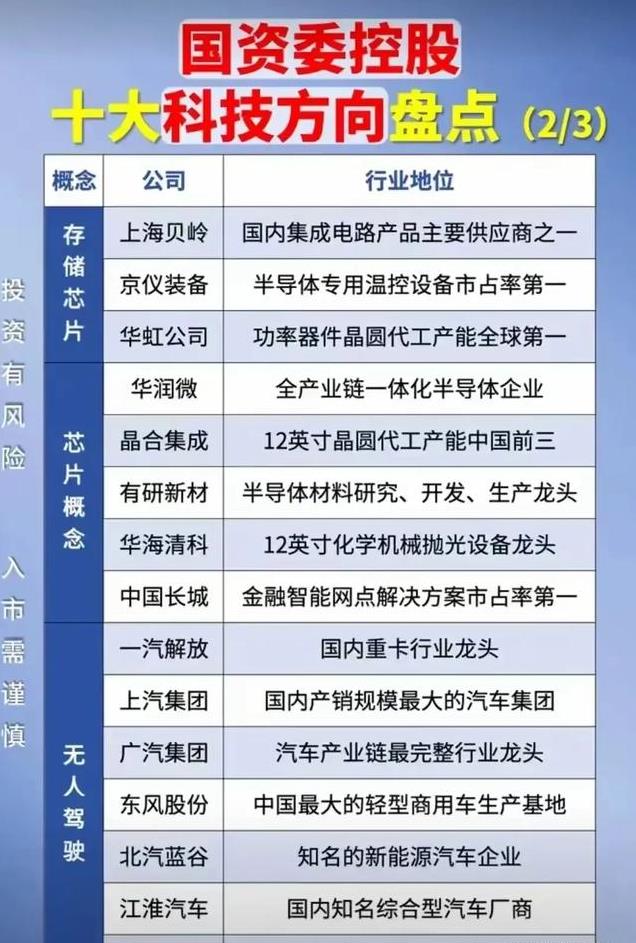 科技强国永远在路上,也永远不会过时。以下是国资委控股的十大科技方向、科技强国产业链、半导体国产芯片替代核心企业、排名世界第一的公司与华为十大功臣的完整梳理,具体如下: