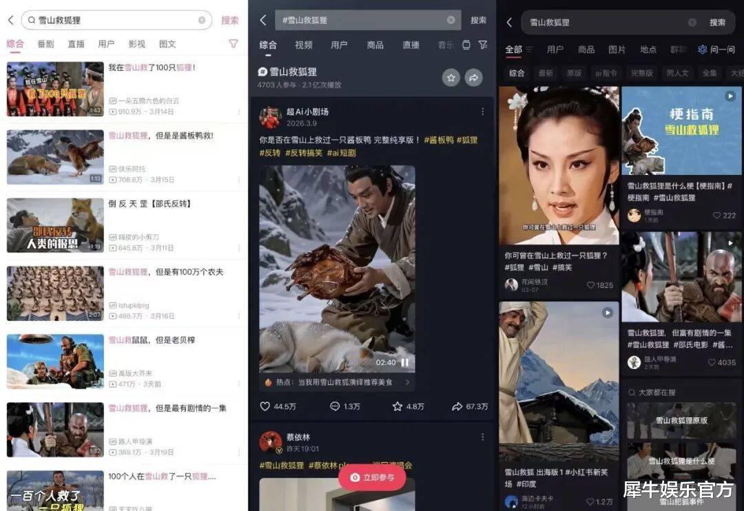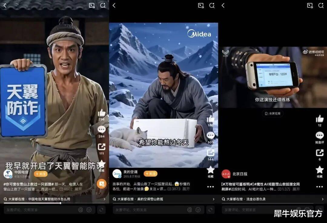 AI工具的普及降低了创作门槛,让更多普通用户从观看者变成创作者。无论是视频剪辑还是剧情设计,AI帮助用户快速生成和修改内容,甚至能自动分析受众喜好,优化创作成果。这种“人人都能创作”的模式,让《雪山救狐狸》的故事在短时间内迅速演化出了大量版本。
