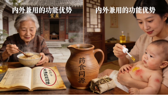 功能油脂的另一大趋势是“药食同源化”。未来的油脂必须证明它不仅是能吃的,还能调理身体、改善代谢、修复炎症、润滑器官、提升身体适应力。工业油脂无法做到这些,冷榨油也难以做到,而热榨茶油却与这一趋势天然契合。茶油在中国医书中几十次被提及,不仅被用来调脏腑,还能作为外用良药,进入皮肤、关节、创面、经络。这种“内外兼用”的功能性,使它在未来的健康市场拥有巨大优势。随着现代研究强调植物油脂的抗炎作用、皮肤屏障修复功能、肠道友好度,茶油的功能性将逐步被科学语言解读。这不是新发现,而是古代文明早已认知的智慧将在现代科学中获得补充。