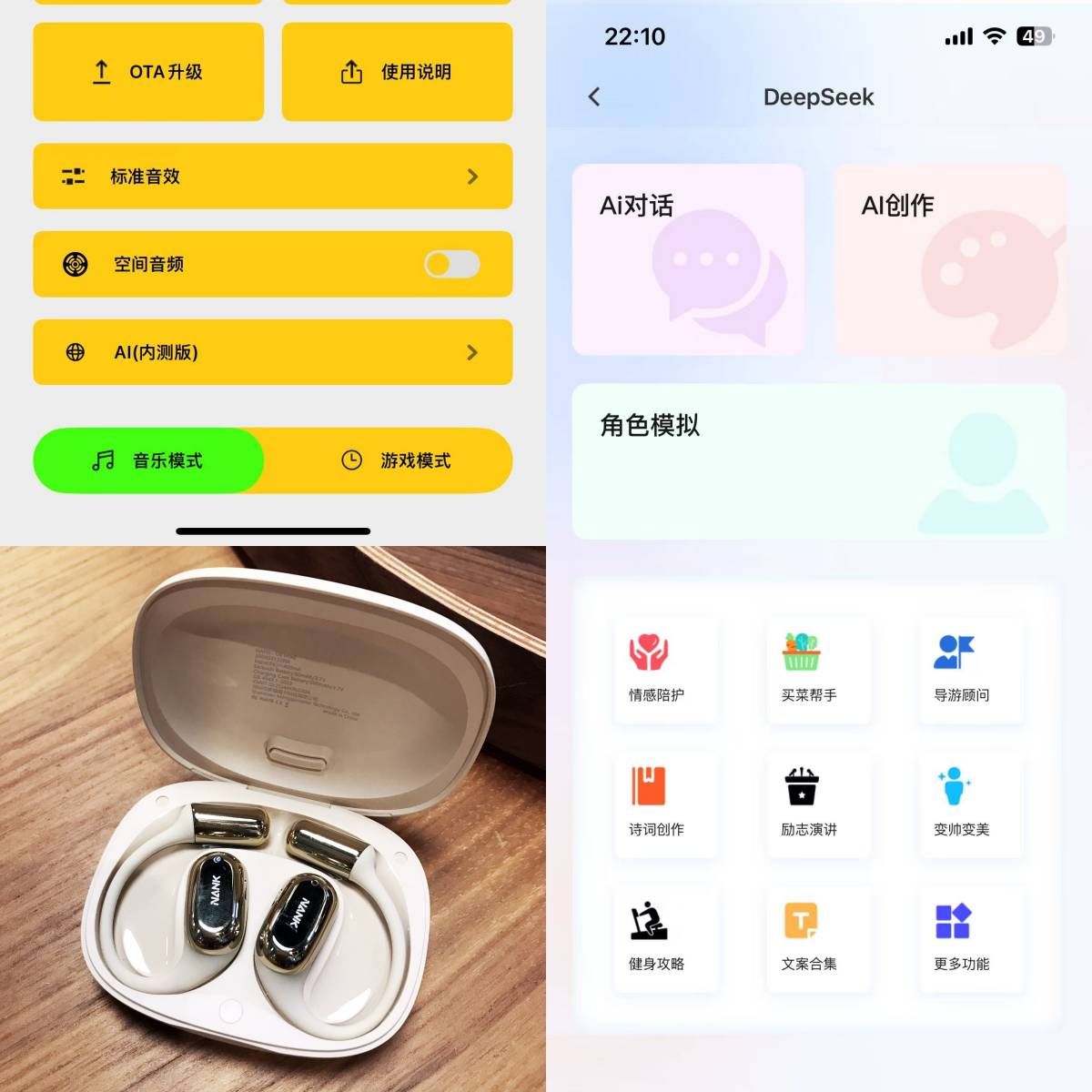 很多耳机的AI功能就是凑数的:翻译要等半天,还经常翻错;对话像跟机器人聊天,问啥都答非所问。但南卡OE Mix2的AI是真能干活的。它集成了讯飞、DeepSeek这些专业AI的能力,不是自己瞎做的小功能,光这一点就比很多竞品靠谱。