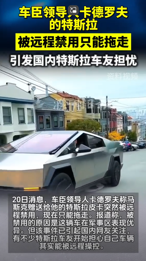 总之,特斯拉对卡德罗夫Cybertruck的远程锁定是一个充满争议的话题。