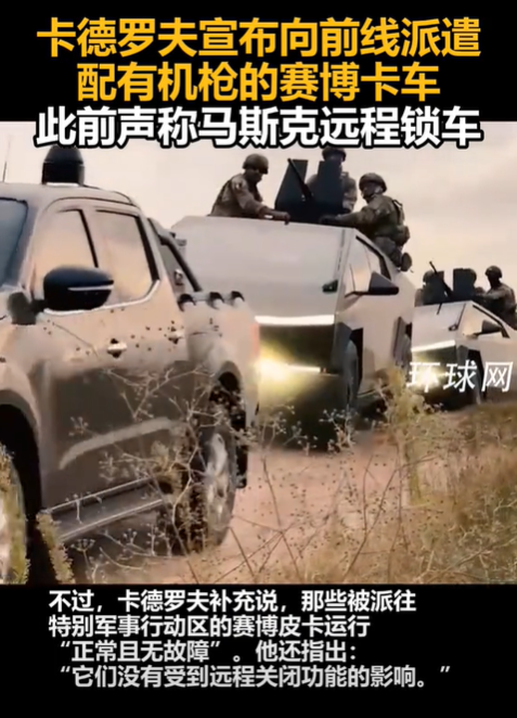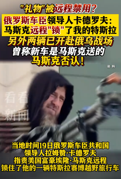 卡德罗夫分享了这段视频,并且表达了他对特斯拉此举的不满。