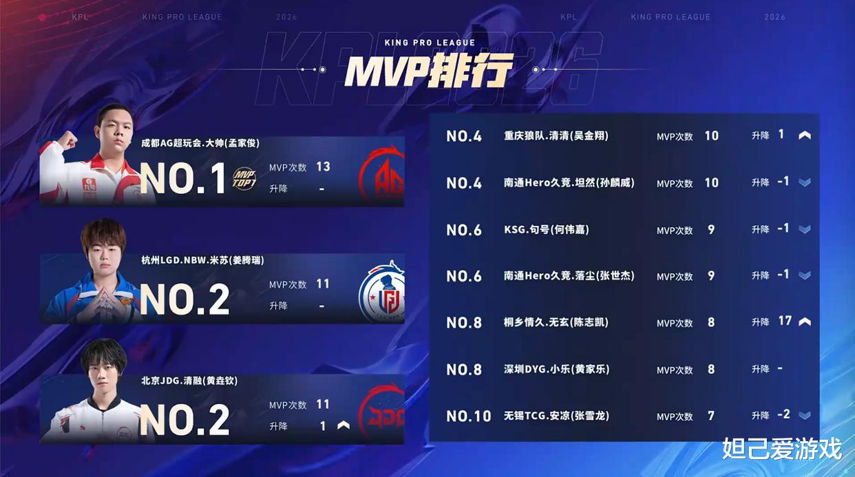 KPL第七周最佳榜单:“FMVP清融稳定C,AG大帅击杀参与率90%!”