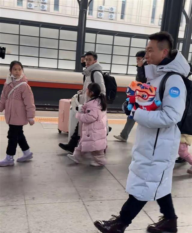 央视主持人康辉抵达哈尔滨火车站时,天气冷得让人直打哆嗦。