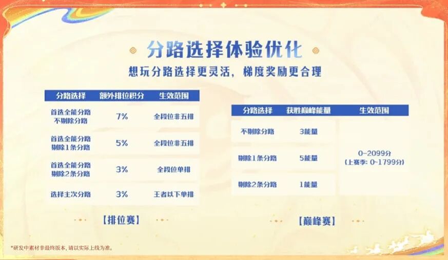 然后是全能分路排位赛的额外积分加成,可以至多剔除2条分路,且得到的加成不一样,而且只在单排中生效。