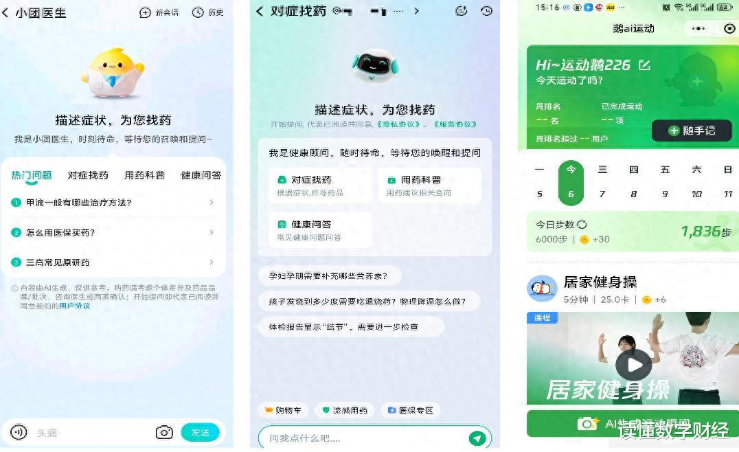 医疗AI赛道正迎来新一轮布局热潮。《读佳》了解到,近日,京东买药上线“对症找药”助手,美团买药也推出了“小团医生”。此外,腾讯低调上线了一款名为“鹅AI运动”的小程序,切入运动管理。