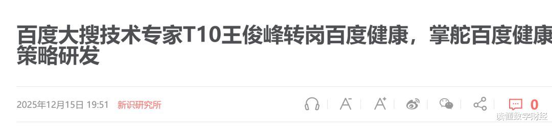 百度的动作更为精准,在蚂蚁阿福完成品牌升级的2天后,其在 AI DAY上,集中发布文心健康管家升级、原子开放计划、Dr.Flow 创作平台三大成果。同时,百度罕见地直接将T10技术专家转岗至百度健康,T10在百度内部属于顶尖技术岗级别,此次跨部门调动,足见其对健康赛道的重视程度,也标志着百度将AI核心能力倾斜健康业务。