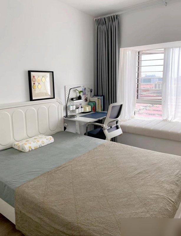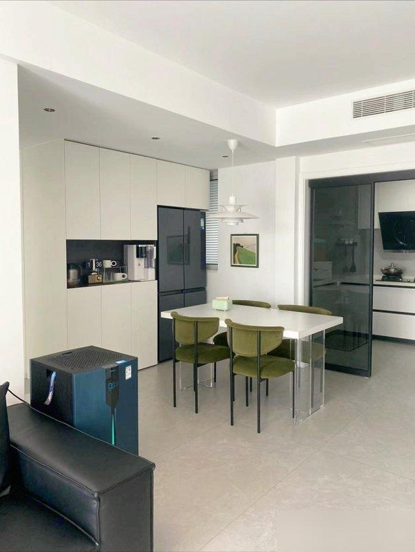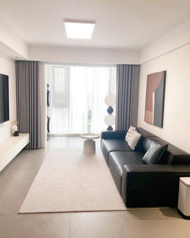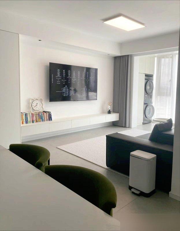 客厅更绝,只留一张模块沙发,像乐高随便拼:朋友来拆成L型嗑瓜子;老公加班拼成单人床抱电脑。