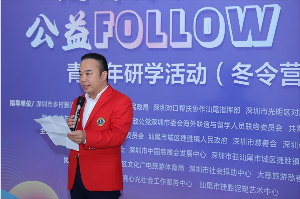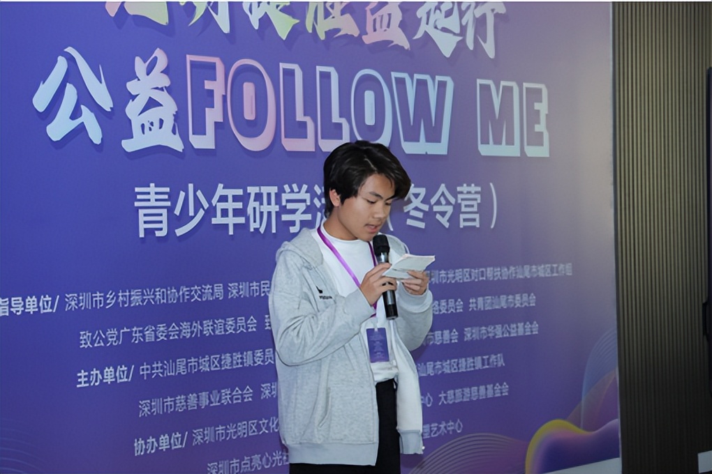 2月5日下午,光明捷胜益起行——公益FOLLOW ME青少年研学活动(冬令营)闭营仪式在汕尾市城区捷胜镇圩镇客厅举行。汕尾市城区副区长林史谦,深圳驻捷胜镇帮扶工作队符仕春、张婷婷、邓永才,深圳市慈善行业联合党委书记、深圳市慈善事业联合会常务副会长刘国玲,深圳市广电公益基金会理事长庞玮,深圳市中国慈展会发展中心副理事长兼秘书长郭云霞,深圳狮子会会长特别助理、社区服务委员会主席魏欣新,深圳狮子会深汕服务队队长陈陆,深圳市慈善行业联合委员会办公室主任、深圳市慈善事业联合会支部委员会书记王鑫,深圳市中国慈展会发展中心副秘书长许晓君,香港中文大学(深圳)学生事务处助理经理、校团委委员易碧帆,汕尾市好好呷文化传媒有限公司总经理刘庆志等主协办单位代表、捐赠企业基金会代表和全体学员出席。
