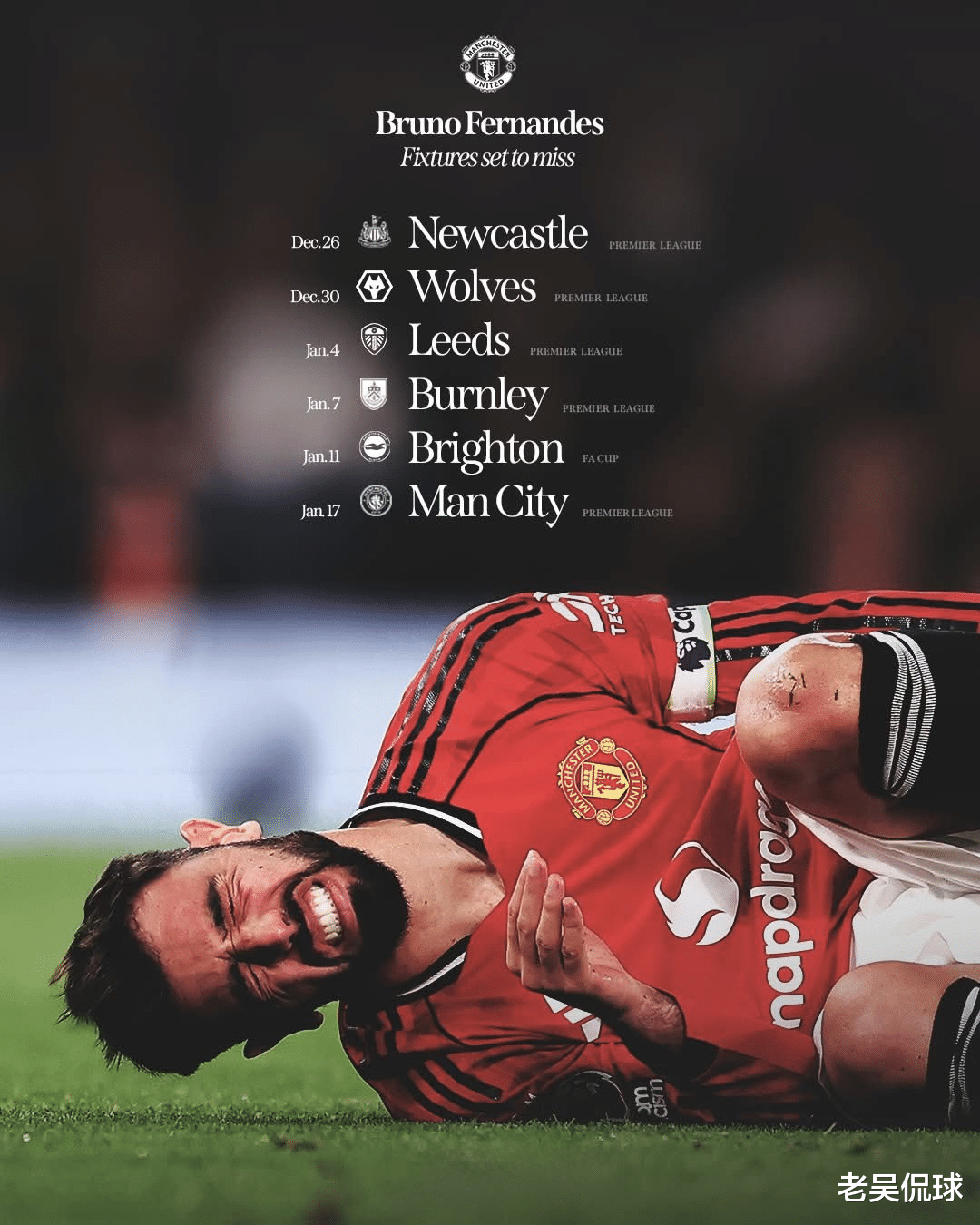 上周末出征维拉公园,曼联1比2落败,结束了4轮不败的小小高潮,输球的同时伴随巨大打击,队长B·费尔南德斯跟腱受伤,坚持了半场还是顶不住在中场休息时退下火线。据悉,他将休战几周,而这正好是赛事最密集、还因非洲杯被迫减员的时期。