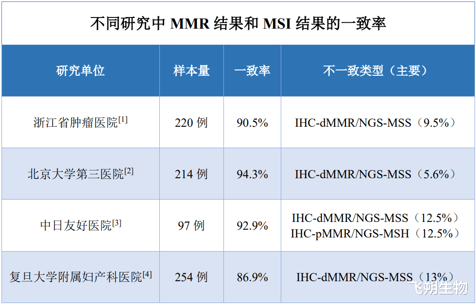目前病理科只检测MLH1、MSH2、MSH6和PMS2这4种核心蛋白是否表达。除这4种蛋白之外的MMR蛋白缺失及功能缺陷也可能会导致MSI-H。肿瘤细胞含量<30%的样本,IHC易受间质细胞干扰,甲醛固定时间过长(>48h)会导致DNA交联、蛋白抗原性丢失,显著增加不一致风险(发生率升高3.2倍)。还有抗体选择,人工判断都会导致结果存在差异。