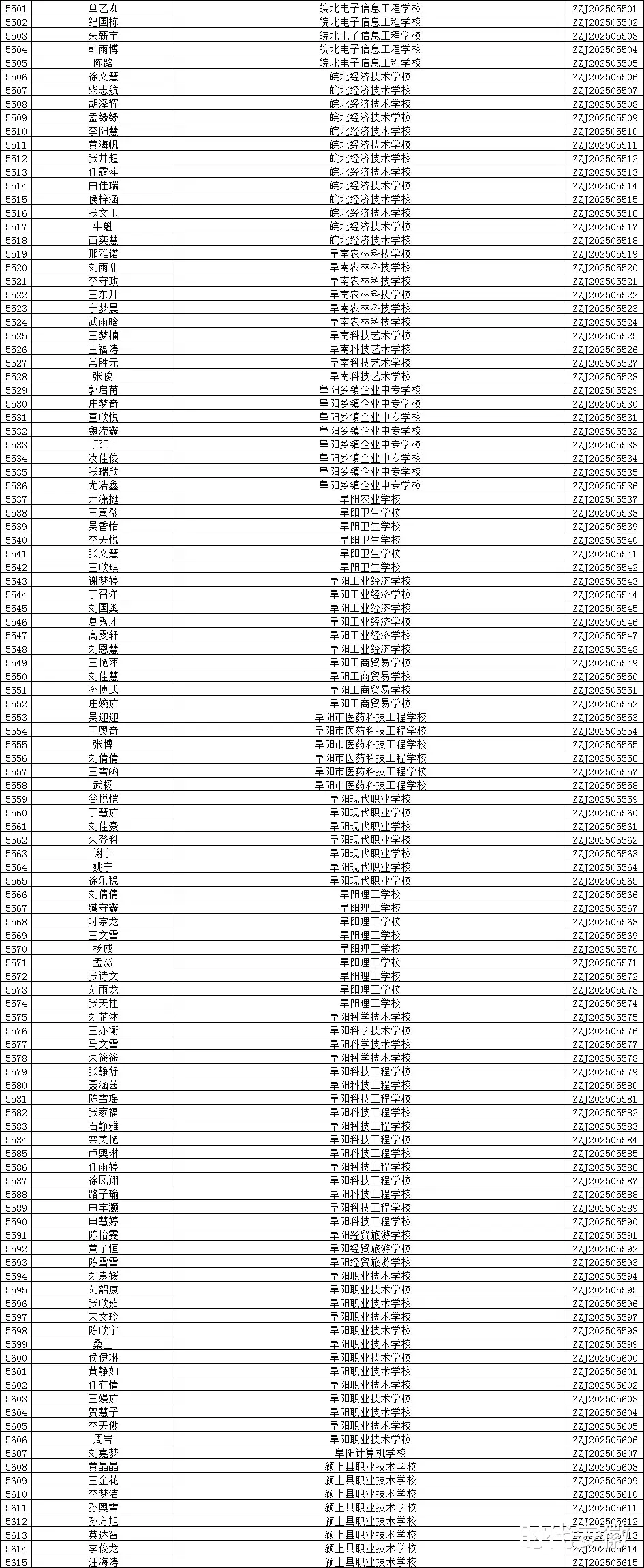 阜阳市获奖学生名单