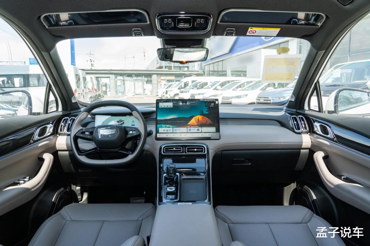 内饰颜色有灰色和金色两种,搭配环抱式座舱尽显舒展大气,10.2英寸全液晶仪表可显示信息丰富,真皮多功能方向盘按键丰富,还使用了钢琴烤漆材质,15.4英寸中控屏彩色分辨率达到了2.5K,支持导航、手机互联、车联网、4G网络、OTA升级等功能,车载智能芯片用的是龙鹰一号,不用担心后面有卡顿现象,L2级智能驾驶辅助系统也给安排上了。
