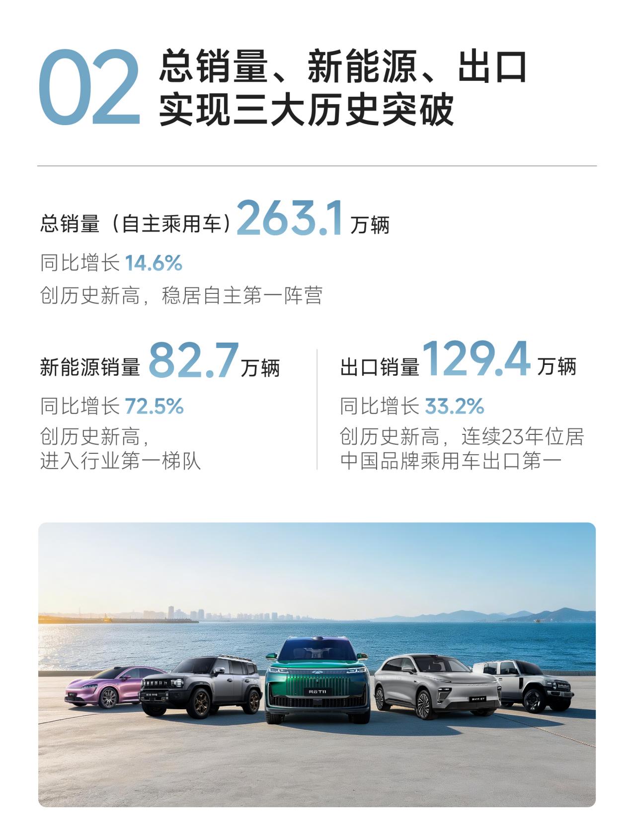 奇瑞汽车2025年业绩公告披露的核心数据,让行业看到了其新能源出海的亮眼爆发力:全年新能源汽车出口销量同比增速突破500%,实现跨越式增长,而在这一惊人增速背后,混动技术车型成为核心增长引擎,扛起了新能源出口的大旗。风云A9L、风云T11等重磅混动车型,凭借精准的市场适配性与硬核技术实力,在欧洲、中东等全球主流海外市场持续走俏,收获海量海外用户认可,不仅打开了新能源出口的全新增量空间,更让奇瑞汽车的混动技术优势,在全球市场得到充分彰显,成为自主车企混动出海的标杆范本。
