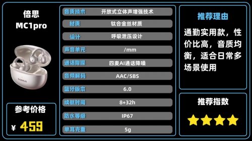 推荐理由:通勤实用款,性价比高,音质均衡,适合日常多场景使用