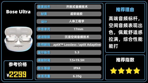 推荐理由:高端音频标杆,空间音频表现出色,佩戴舒适感拉满,综合性能能打