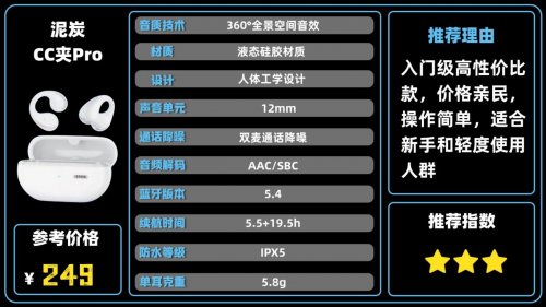 现在开放式耳机越来越受欢迎,夹耳式耳机因为戴着舒服、适合多种场景,受到了通勤、运动和办公人群的喜欢。这次测评主要看三个关键方面:戴着舒不舒服、音质好不好、连接稳不稳定。我们选了几款口碑好的机型仔细分析,给不同预算、不同需求的用户一份靠谱的选购建议,帮你找到好用又划算的款式。