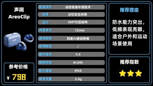 推荐理由:运动向实用款,佩戴稳固轻便,风噪控制不错,适合跑步、骑行使用