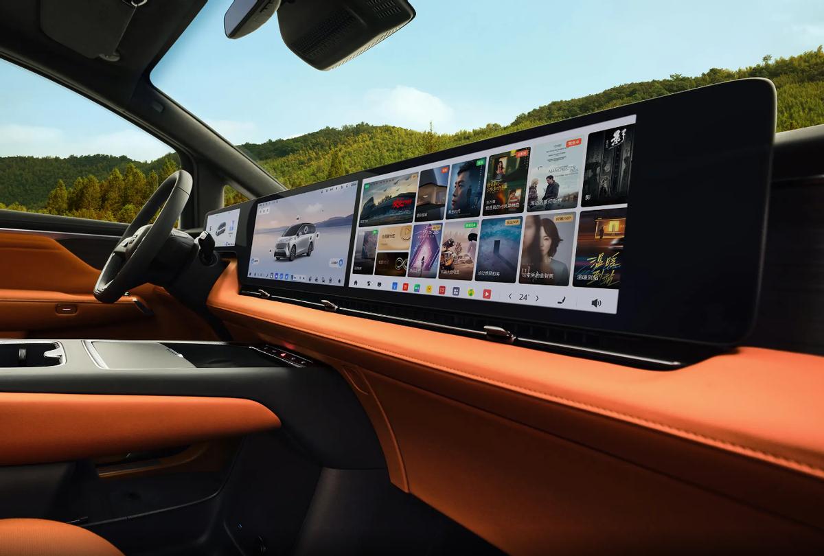 看完外观,相信不少朋友都觉得至境世家的颜值算是过关了,那这个时候坐进车内就让人略感失望。我个人感觉中控这块三液晶联屏实在是败笔,从左到右分别是10.25英寸液晶仪表、16.3英寸中控屏和16.3英寸副驾驶娱乐屏,倒不是说有三块屏幕不行,现在很多新能源都是这么做。但问题是在2025年亮相且没上市的新车,能够用上“黑边”这么大的屏幕,和高端真是很难联系在一起,比三年前上市的新势力车型都有过之而无不及。另外就是门板处和中控台其它区域,视觉上不是特别高级,毕竟三块屏幕占据太大地方,连留给氛围灯发挥的空间都被压缩。