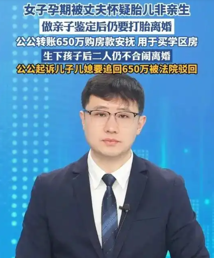 丈夫在老婆孕期怀疑她出轨,逼她打胎;结果亲子鉴定一出,孩子是亲生的;公公立马转账650万“求你别走”;结果孩子生了,夫妻还是离了;公公转头就告儿媳:“钱还我!”