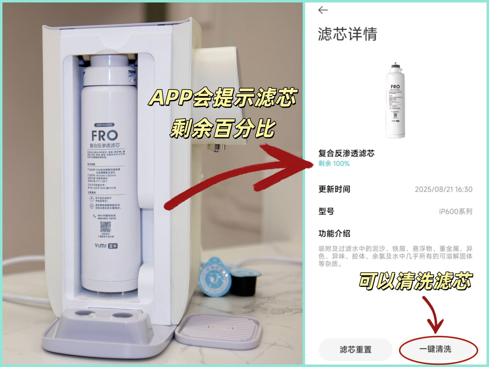 一开始我还担心,净饮机的滤芯更换成本会很高。宜米RO熟水即热净饮机的滤芯可以在手机APP提示剩余百分比,不用担心滤芯过期忘记更换,再也不用过多操心了!而且换滤芯特别简单,一旋一拧就能搞定,老人自己也能操作。偶尔想清洗滤芯,在APP上操作就行,不用手动拆卸,特别方便。